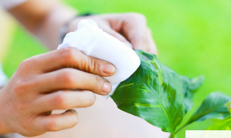 Lấy khăn lau bụi của bạn trên tán lá nhân tạo của bạn.