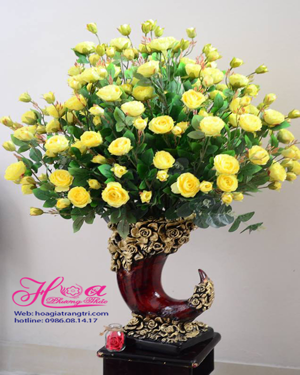 Bình hoa nhựa (Hoa giả): Hoa hồng vàng